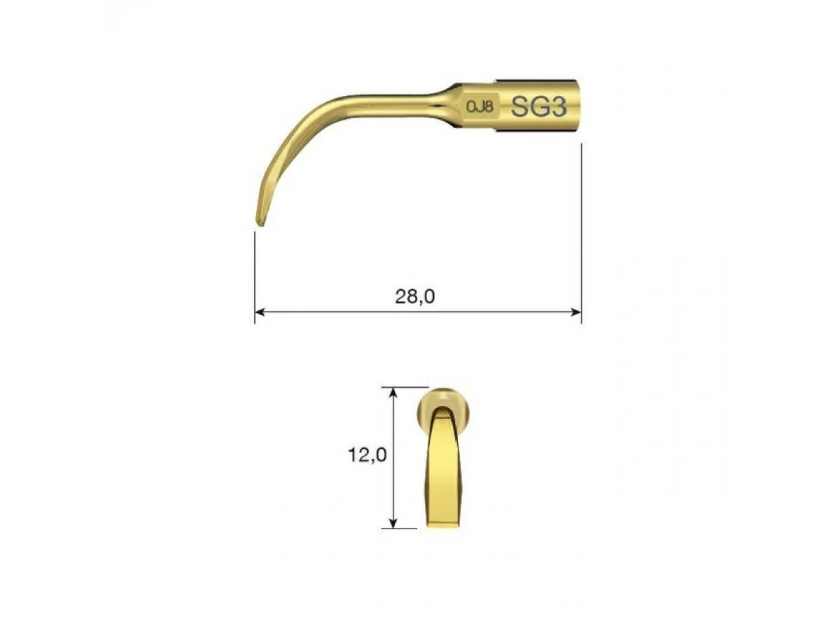Благодаря отсутствию лишних макроскопических движений, передаваемых наконечником, насадка/шпатель SG3 используется для сглаживания контуров аутотрансплантатов “in-situ” (т.е. после того, как трансплантат был установлен и зафиксирован). Она может также использоваться для моделирования краев разрезов (остеопластика). Данная насадка/шпатель предназначена для удаления бугорков, выступов и прочих неровностей, которые могут травмировать надкостницу или десну. Также ее можно использовать для удаления обломков кортикальной пластины. Производитель: NSK Nakanishi , Япония.