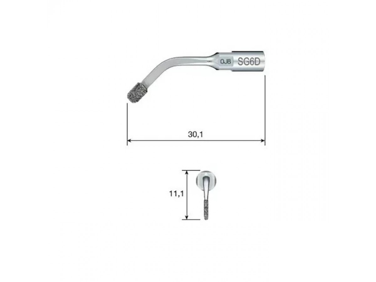 Насадки SG7D и SG6D с поверхностью, покрытой алмазным напылением, облегчают процесс разрезания. Их идеально ровная поверхность гарантирует равномерное распределение ударных усилий, что обеспечивает эффективность данных насадок, их чувствительность и оптимальный контроль глубины проникновения. Эти алмазные насадки предназначены для работы с тонкой костью. Производитель: NSK Nakanishi , Япония.