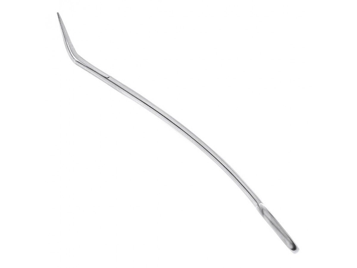 - Инструмент имеет двойной изгиб по плоскости, который облегчает введение ножниц в глубоко и труднодоступные участки полости рта.