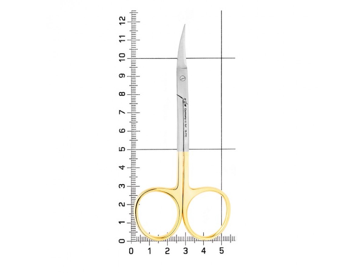 - Лезвия ножниц имеют вставки из твердого сплава карбид-вольфрама, которые обеспечивают повышенную устойчивость к истиранию. Зубчатая режущая грань на одной из рабочих поверхностей препятствует скольжению инструмента по плоскости мягких тканей, что упрощает проведение полостных операций. Рабочая часть ножниц треугольной стандартной формы с острым тонким лезвием, которое без затруднений разрезает мягкие ткани в ротовой полости.