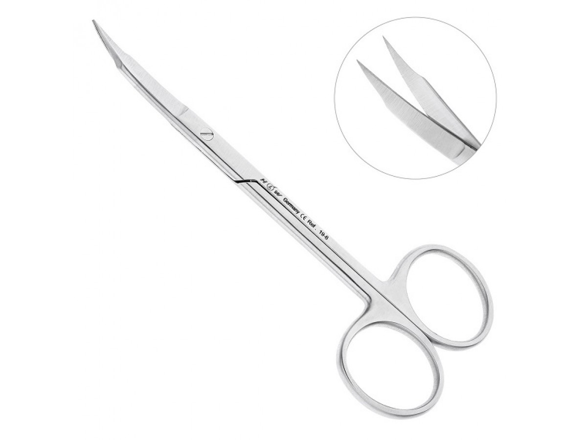 Ножницы хирургические изогнутые Goldmann-Fox 19-6. Длина 12.5 см. Производитель: HLW Dental Instruments, Германия.