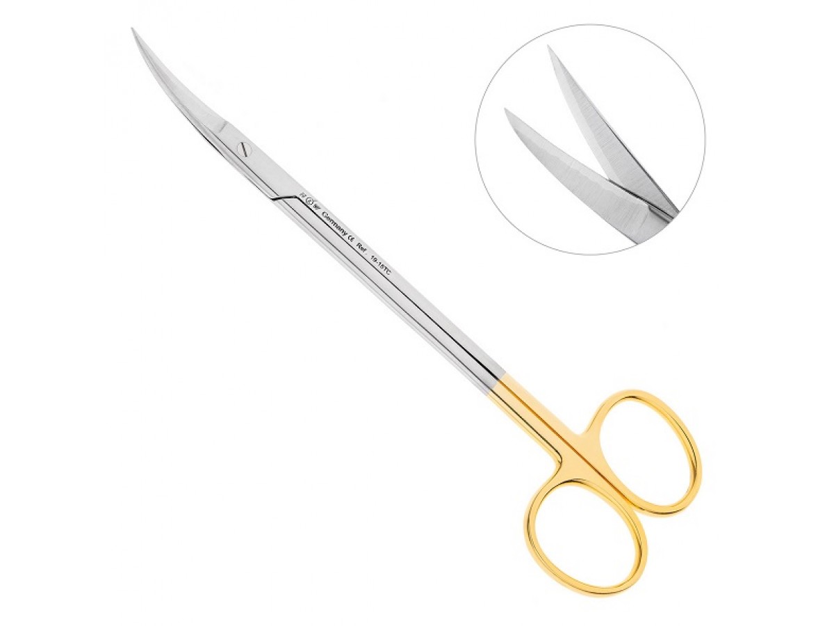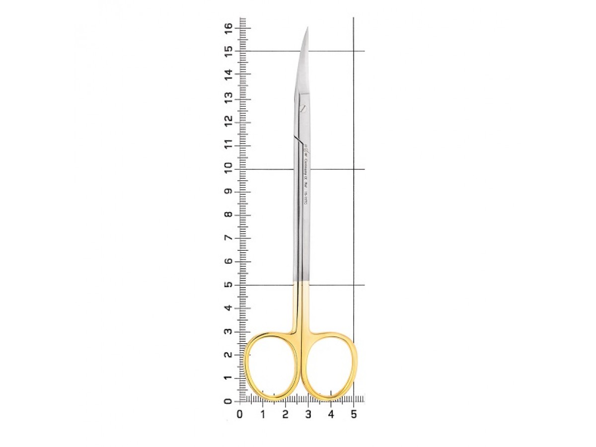 Ножницы хирургические изогнутые Kelly зубчатая поверхность 19-15TC. Длина 16 см. Производитель: HLW Dental Instruments, Германия.