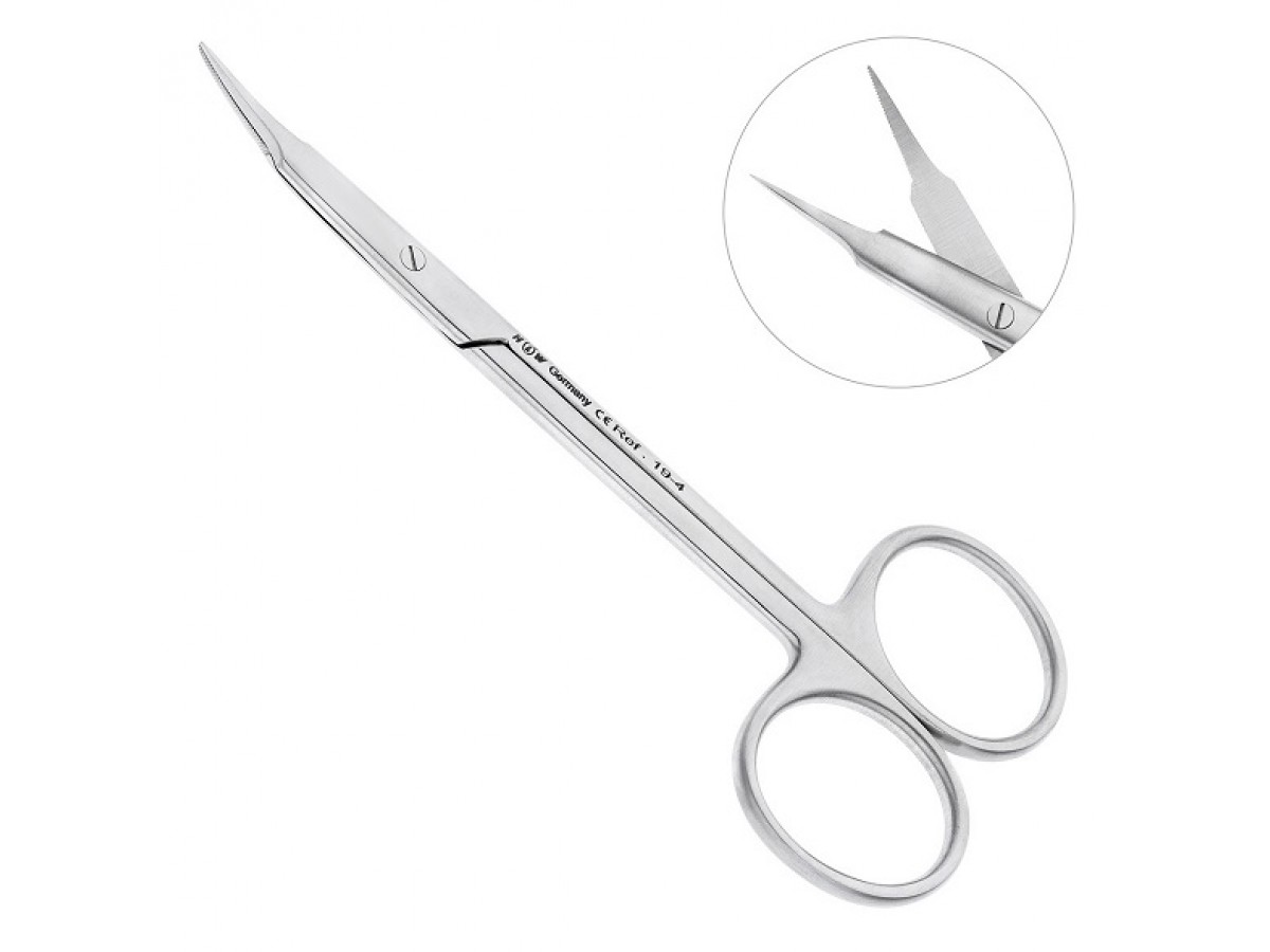 Ножницы хирургические изогнутые Stevens 19-4. Длина 11.5 см. Производитель: HLW Dental Instruments, Германия.