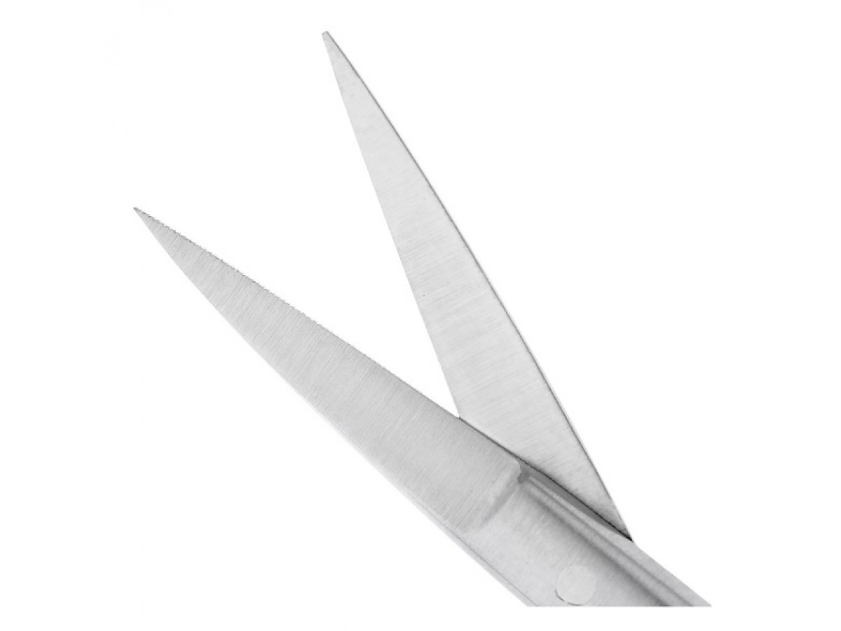 - Зубчатая режущая грань на одной из рабочих поверхностей препятствует скольжению инструмента по плоскости мягких тканей, что упрощает проведение полостных операций. Прямая рабочая часть ножниц треугольной стандартной формы с острым тонким лезвием, которое без затруднений разрезает мягкие ткани и шовные материалы в ротовой полости.