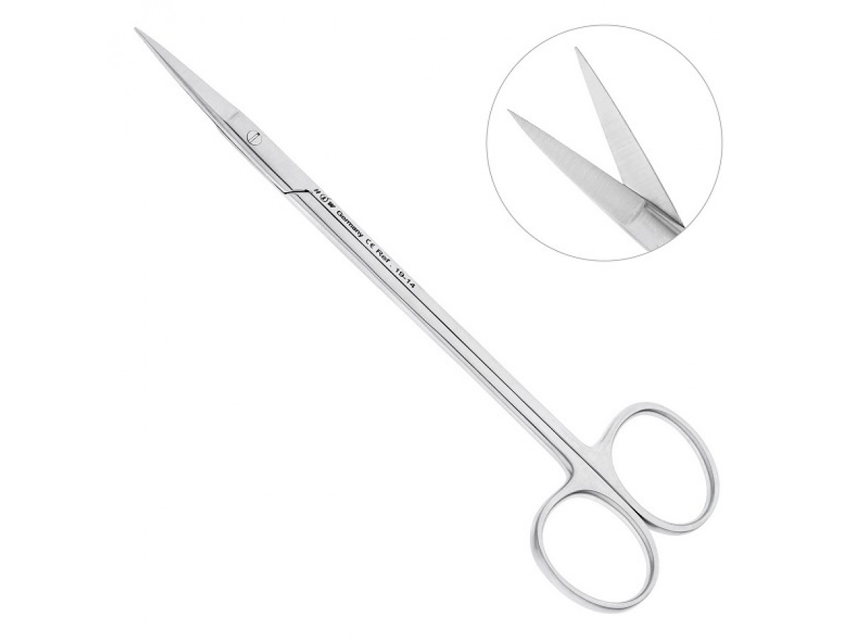 Ножницы хирургические прямые Kelly 19-14. Длина 16 см. Производитель: HLW Dental Instruments, Германия.