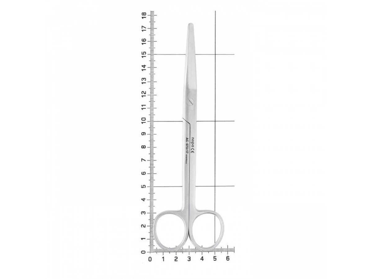 Прямой инструмент имеет длинные, плотносходящиеся рабочие поверхности. Лезвия ножниц хорошо заточенные и затупленные на концах позволяют без труда разрезать как мягкие ткани в полости рта, так и снять швы после операции. Тупые кончики на режущих гранях инструмента играют роль своеобразной защиты, а также ими легко и атравматично можно подцепить тейп и снять повязки.