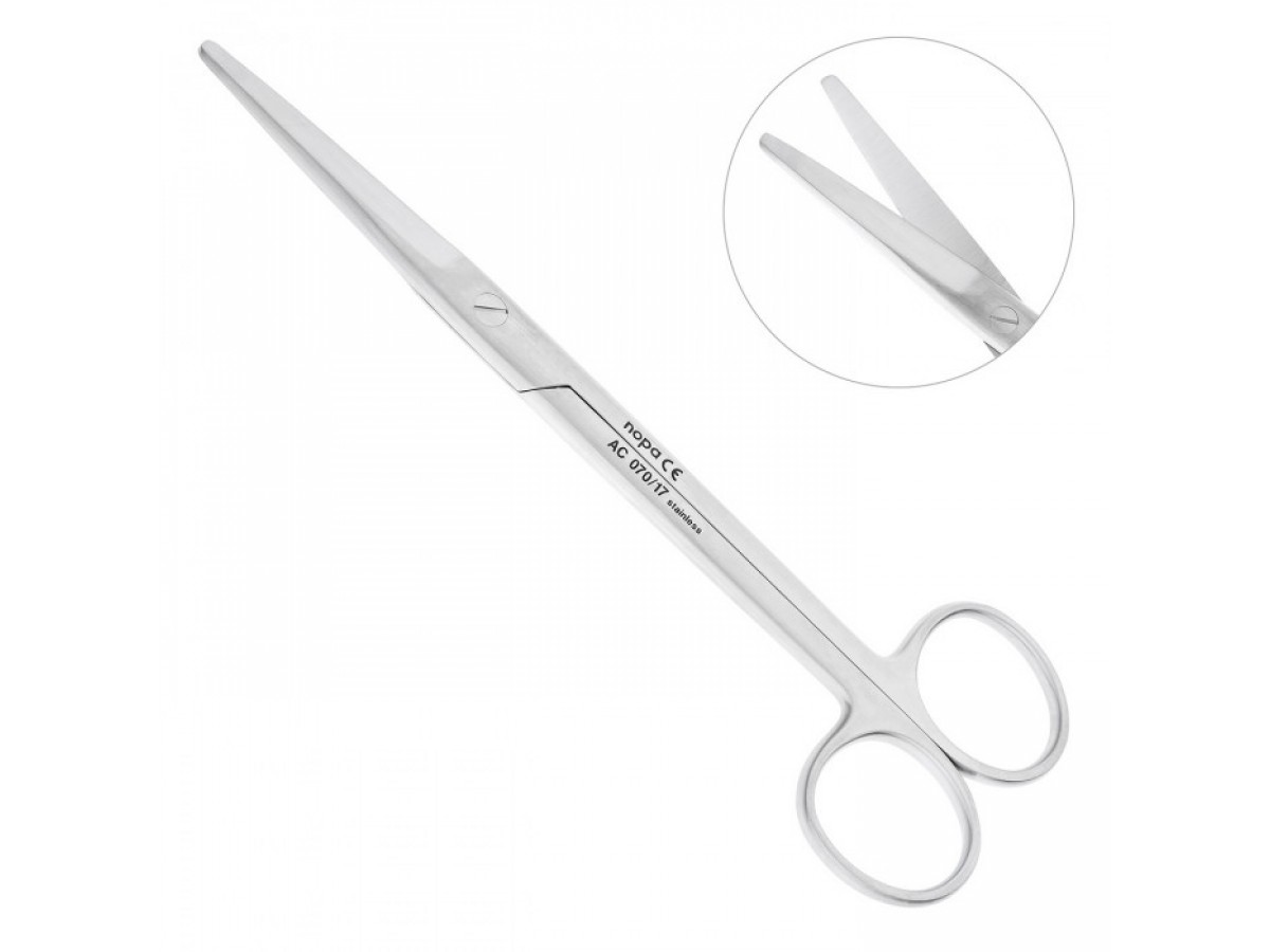 Для коррекции мягких тканей в ротовой полости и шовных материалов применяются операционные ножницы MAYO. Производитель: Nopa Instruments, Германия.