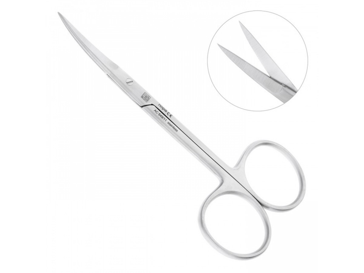 Для работы с мягкими тканями челюстно-лицевой области и шовным материалом используются хирургические ножницы. Производитель: Nopa Instruments, Германия.
