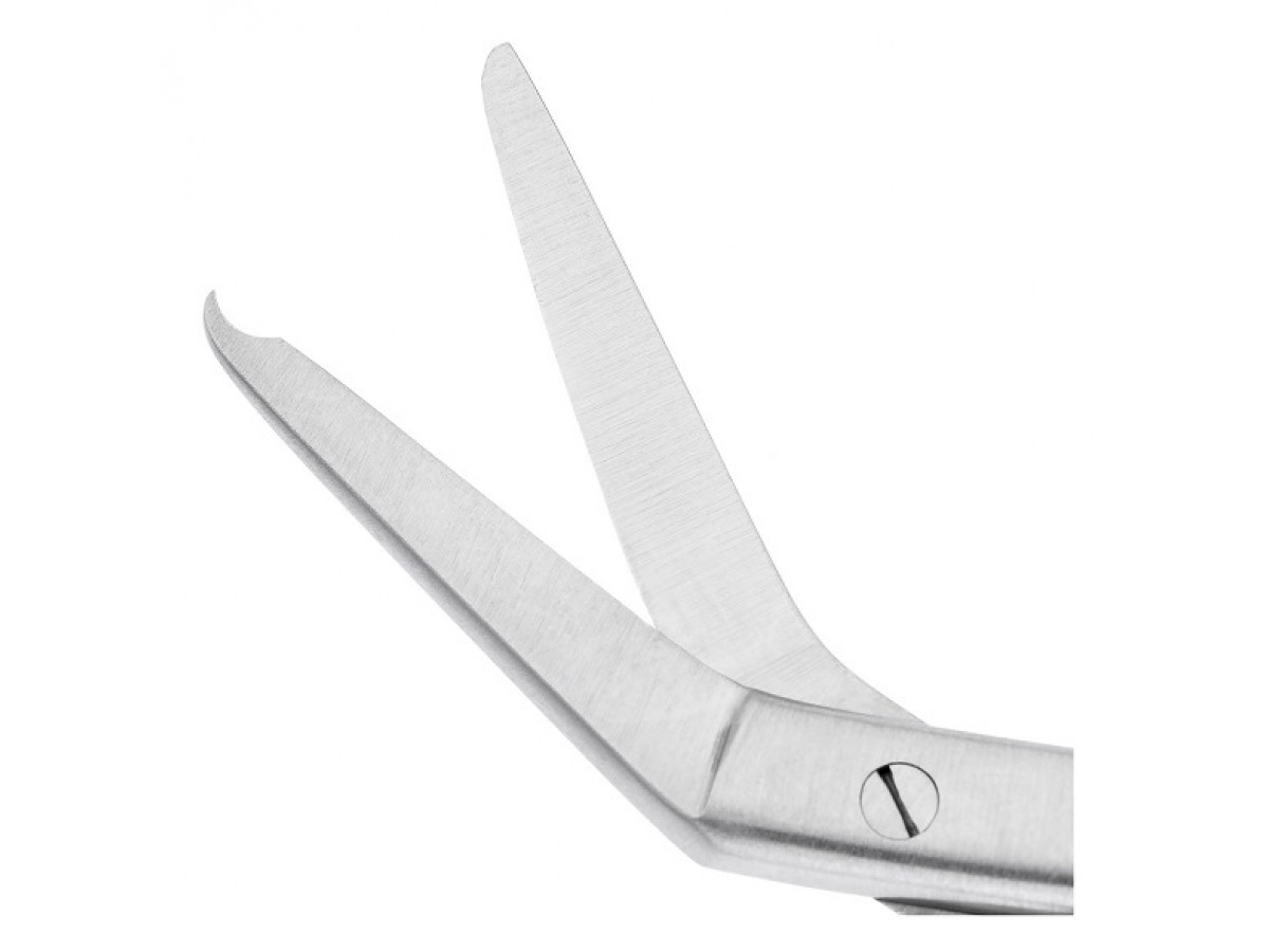 - Изгиб по ребру в рабочей части ножниц облегчает введение инструмента при ограниченном открывании рта.