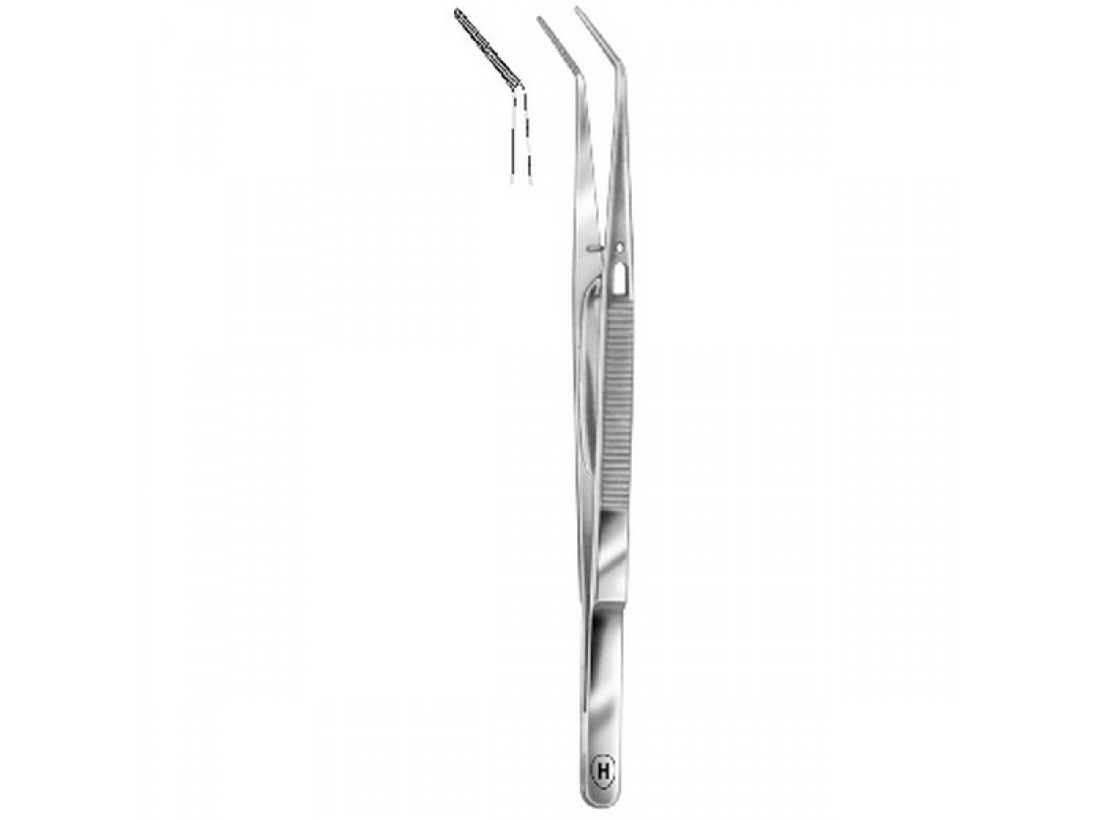 HSC 031-15 – пинцет анатомический с замком, тонкий, изогнутый, остроконечный, бороздчатый, 155 мм. Производитель: Karl Hammacher GmbH (Германия)