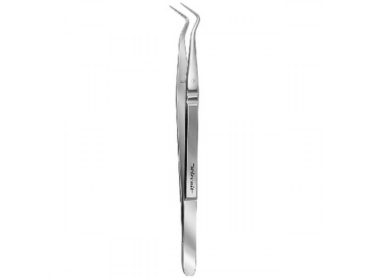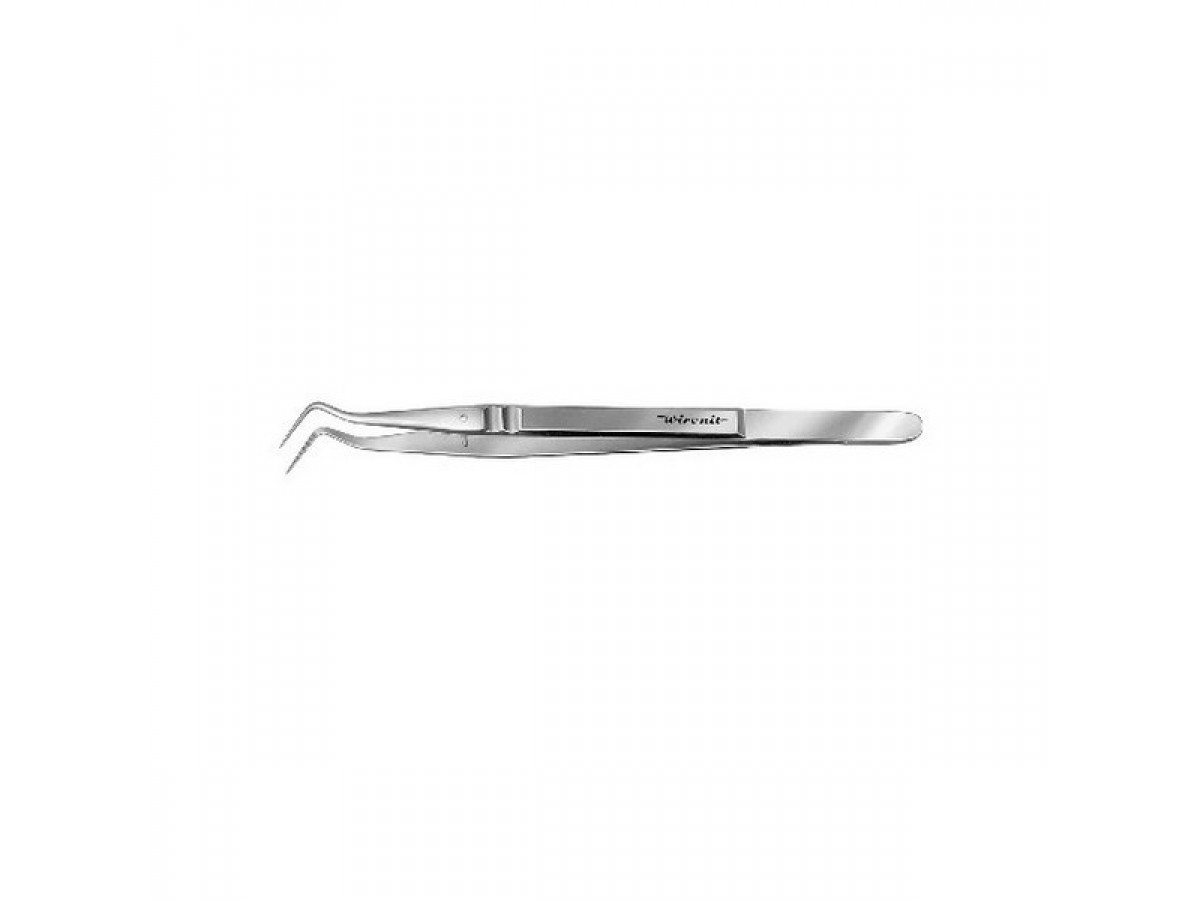HWC 019-12 – пинцет Meriam, изогнутый, с насечками, изготовлен из Виронита, длина 150 мм. Производитель: Karl Hammacher GmbH, Германия.