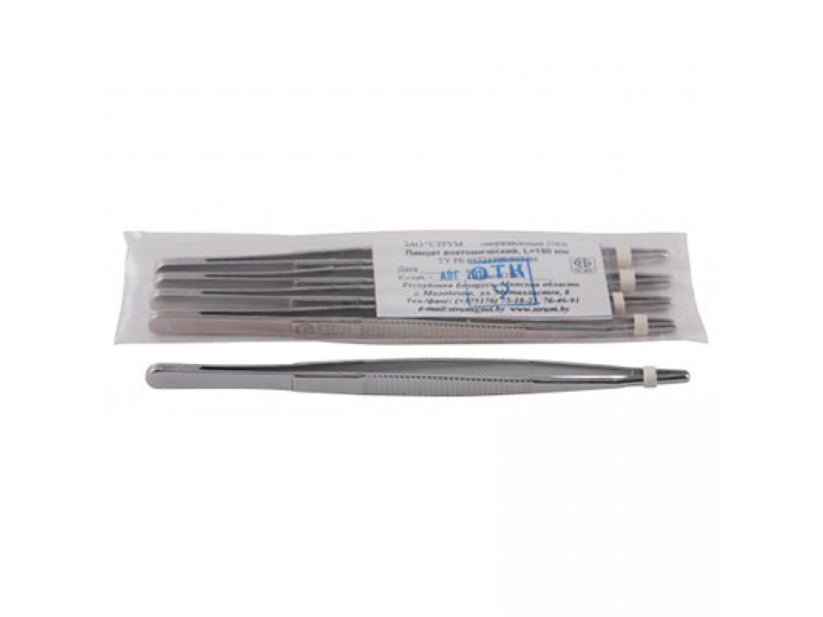 Медицинский анатомический пинцет изготовлен из нержавеющей пищевой стали. Производитель: Струм, Республика Беларусь.