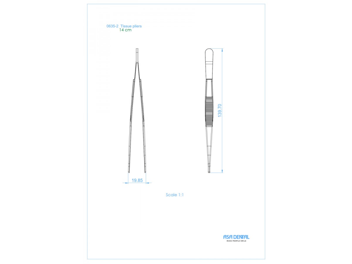 Пинцет анатомический прямой с рифлением, 14 см. Производитель: Asa Dental, Италия.