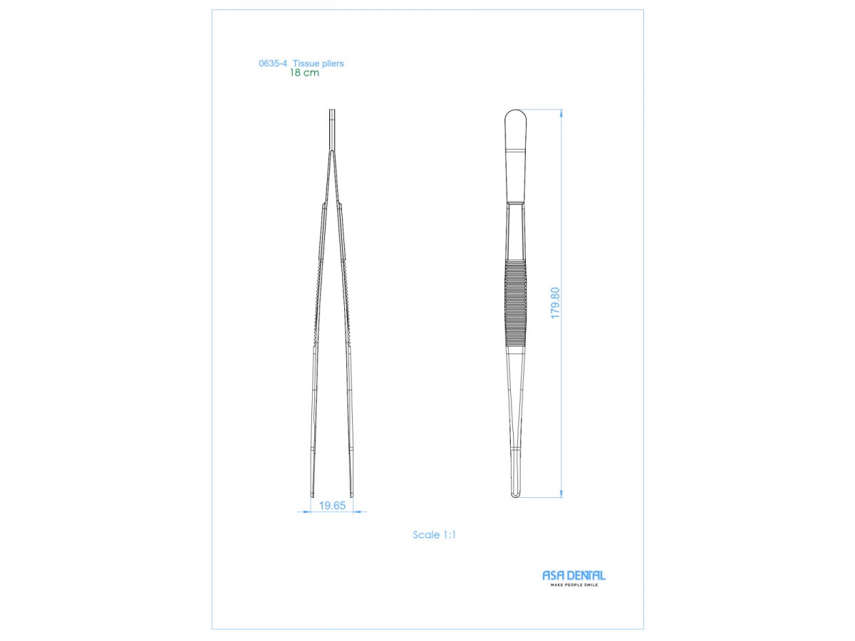 Пинцет анатомический прямой с рифлением, 18 см. Производитель: Asa Dental, Италия.