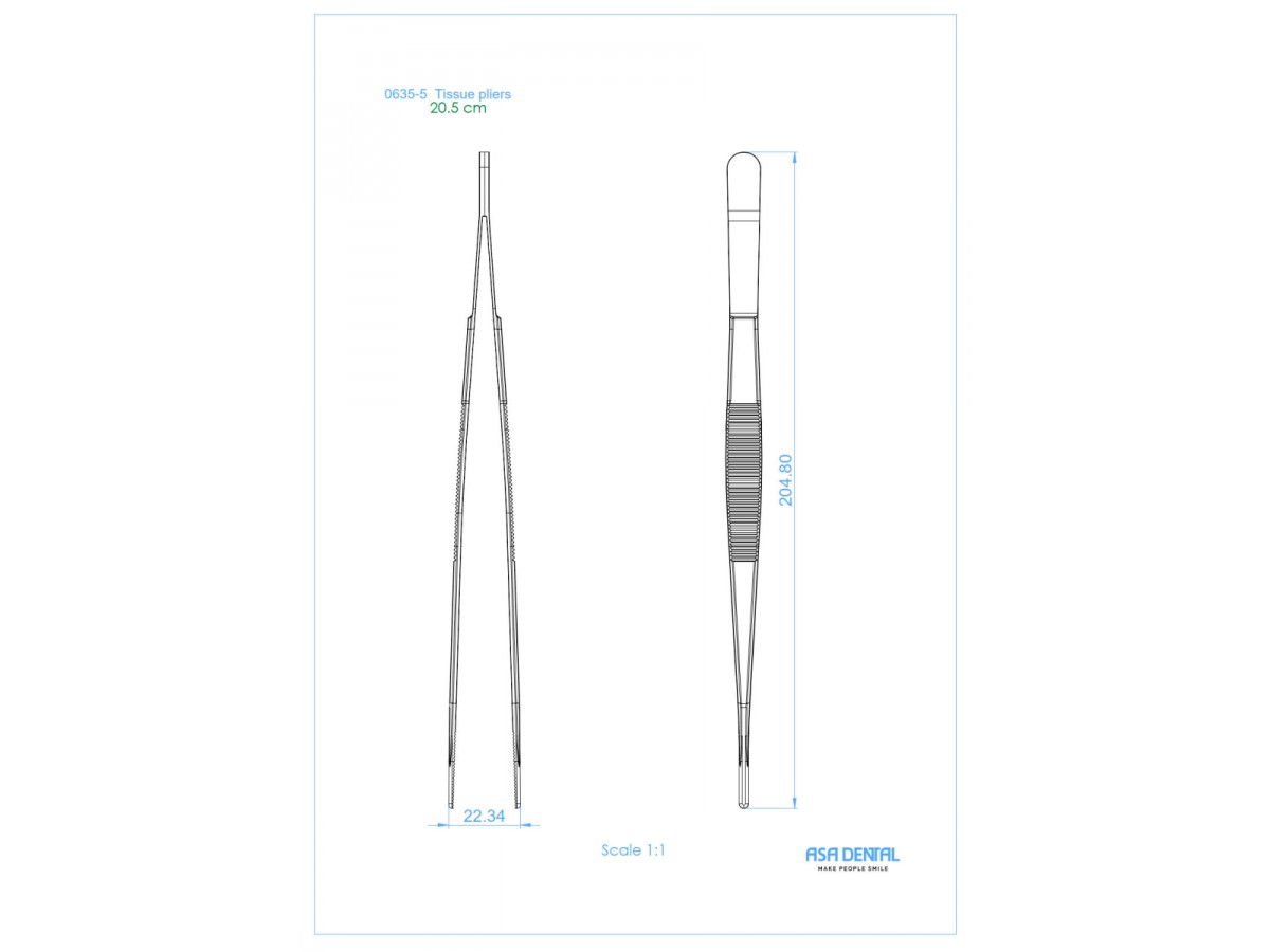Пинцет анатомический прямой с рифлением, 20,5 см. Производитель: Asa Dental, Италия.