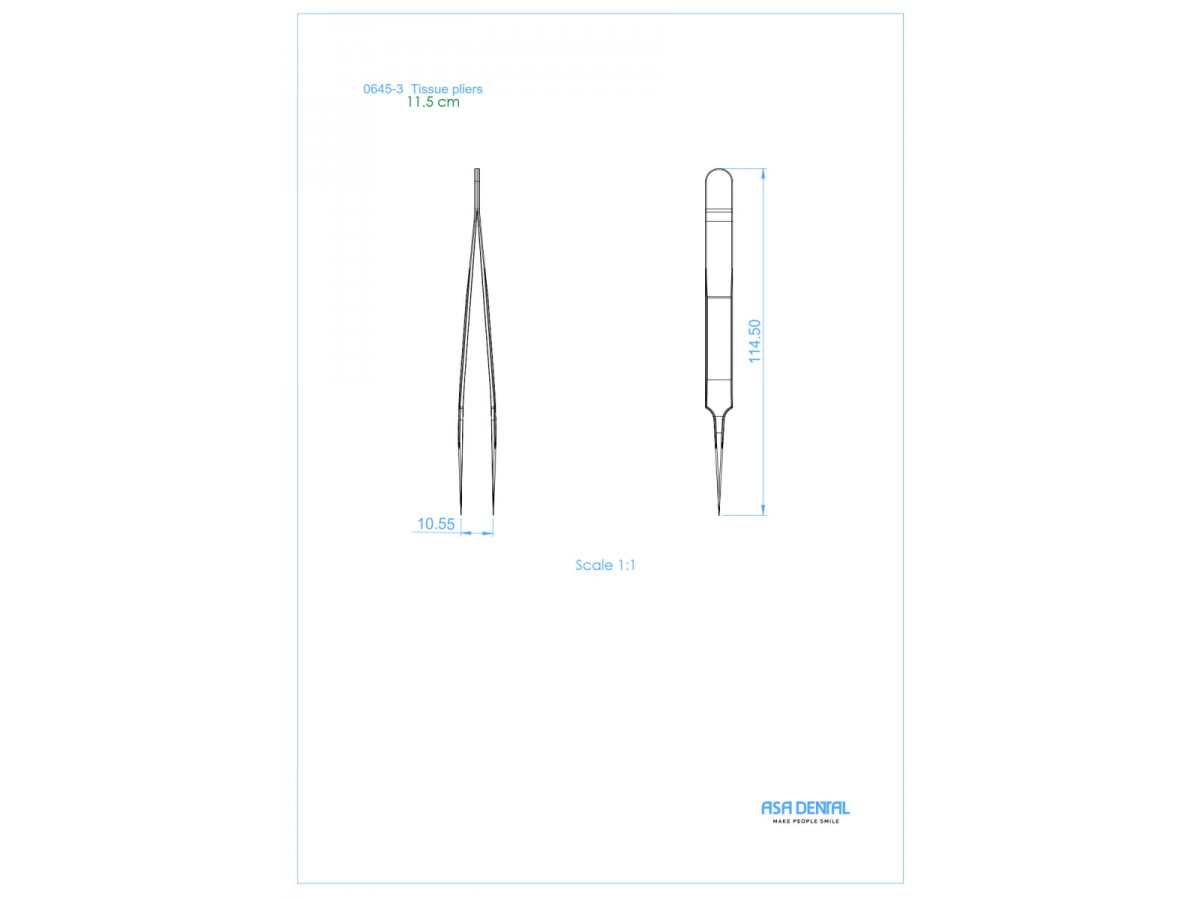 Пинцет хирургический стоматологический прямой с тонкой рабочей частью, 11,5 см. Производитель: Asa Dental, Италия.