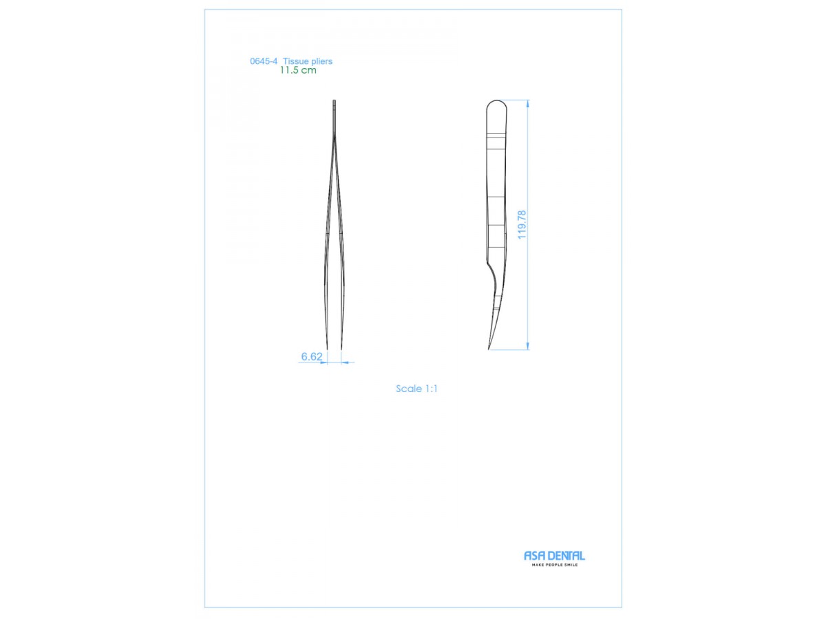 Пинцет хирургический стоматологический прямой с тонкой рабочей частью, 11,5 см. Производитель: Asa Dental, Италия.