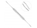 - Двусторонний инструмент представляет собой держатель в виде стержня, на обоих концах которого расположены рабочие части, каждая из которых имеет каплевидную форму с остро заточенными гранями и шириной 2,8 мм. Такая конструкция распатора позволяет без затруднений проводить атравматическое препарирование при имплантации и пародонтологических операциях.