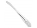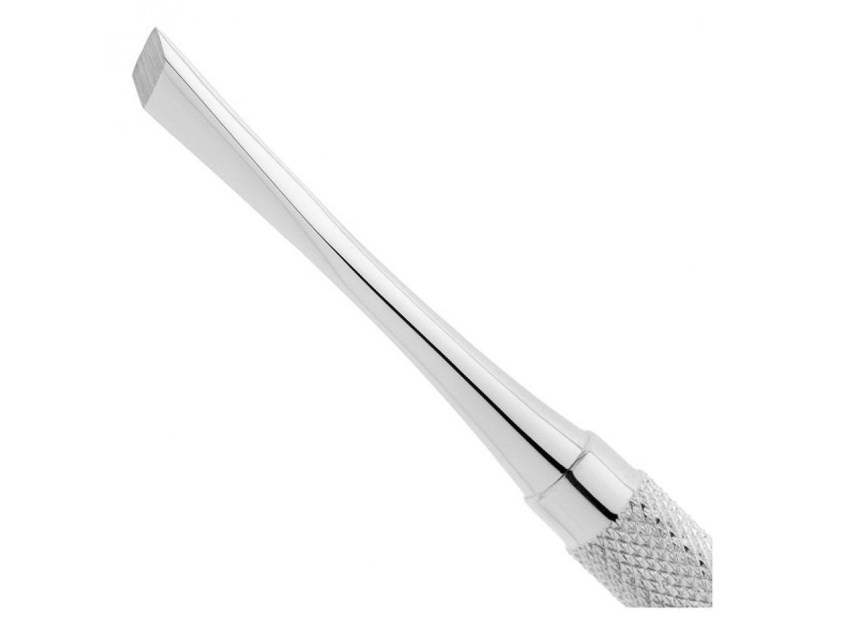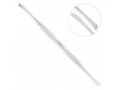 - Одна из рабочих частей двустороннего инструмента имеет остро заточенную закругленную грань шириной 6,5 мм, а другая- заостренную пластину трапецевидной формы шириной 7 мм, расширяющуюся к окончанию. Такое строение распатора позволяет подобрать подходящую рабочую часть для проведения операции или, при необходимости, их чередовать.
