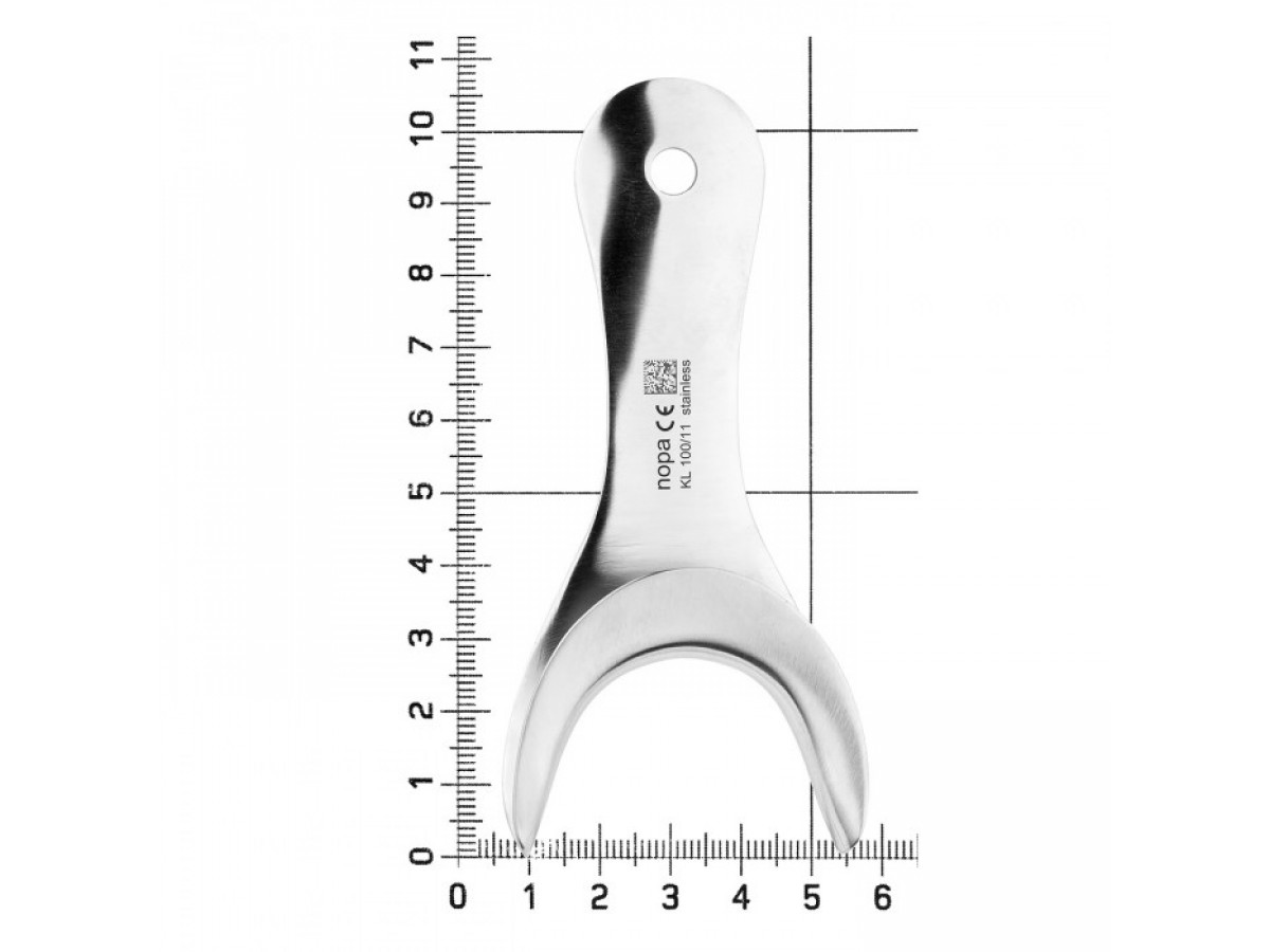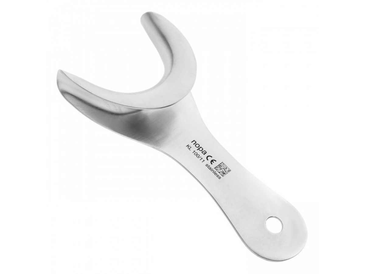 Рабочие части инструмента имеют полукруглую форму с вогнутой атравматичной гранью. Ретрактор применяется для более легкого доступа к оперируемому полю дистальных областей зубного ряда.