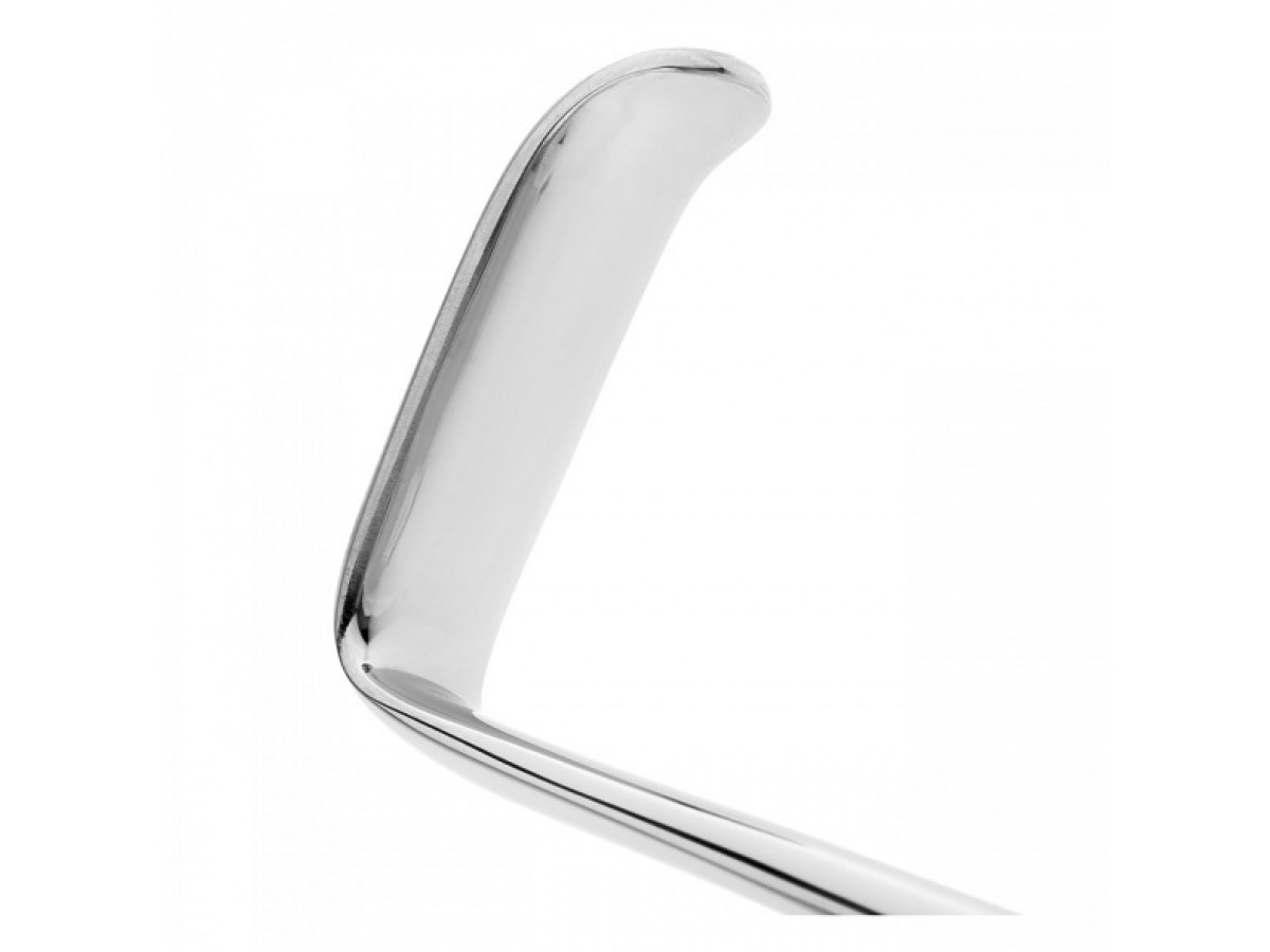 - Кончик рабочей части ретрактора направлен вниз, благодаря такой конструкции увеличивается обзор операционного поля и контроль над рукояткой инструмента. Изогнутая щечка роторасширителя обеспечивает хорошую поддержку мягких тканей и делает отведение менее травматичным.