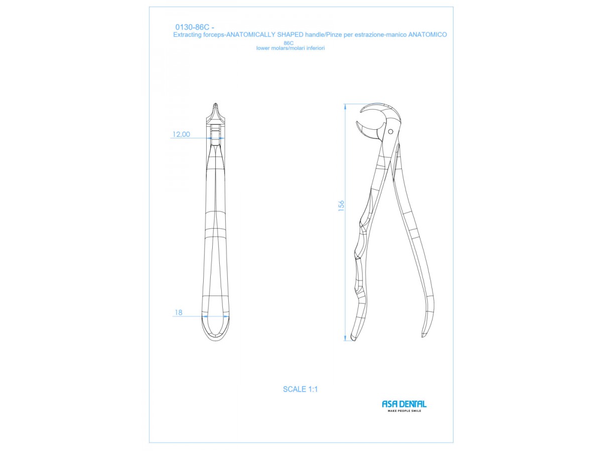 Щипцы N86C для нижних корней с зубчиками с анатомической ручкой. Производитель: Asa Dental, Италия.
