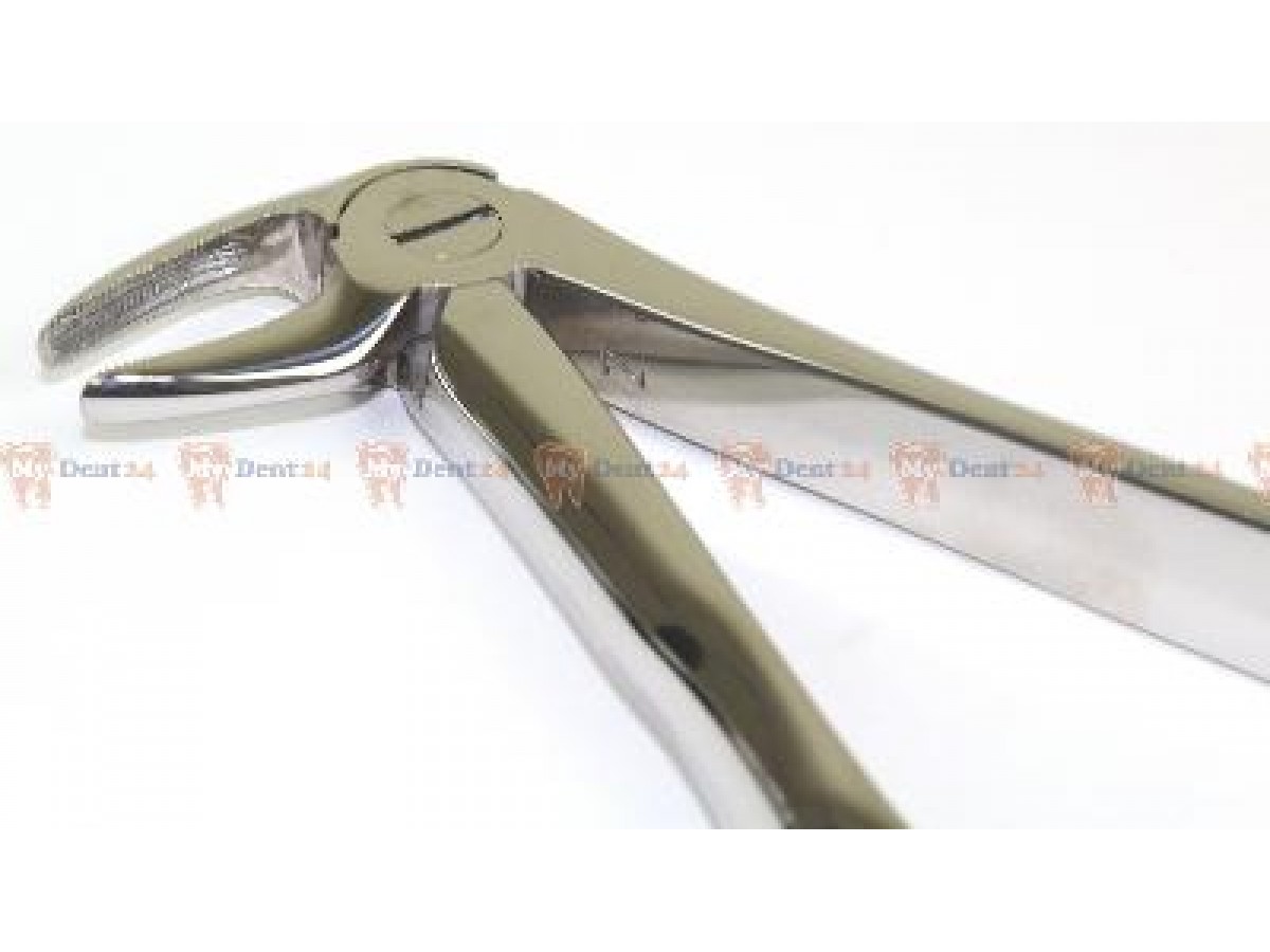 - Рабочие части инструмента узкие, сходящиеся и имеют продольно-поперечные насечки на внутренних поверхностях. Такое устройство щечек щипцов обеспечивает плотный захват зуба и облегчает его удаление.
