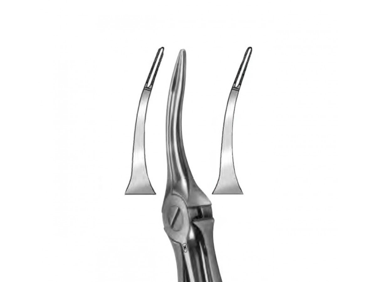 HSA 014-49 – щипцы для удаления корней верхних резцов (11, 12, 21, 22), форма 49. Английская форма, губки с продольными насечками. Производитель: Karl Hammacher GmbH (Германия)