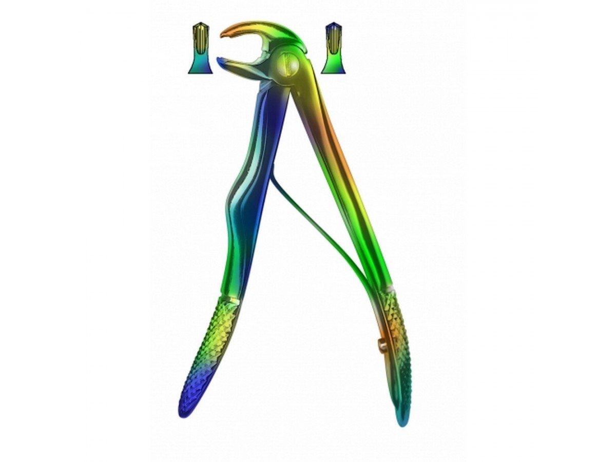 HSA 355-06 – щипцы детские Arquatus Line для удаления нижних моляров (73, 74, 75, 83, 84, 85), форма 6 по Klein, губки нескользящие, пружинный механизм, разноцветное покрытие для отвлечения маленького пациента. Производитель: Karl Hammacher GmbH (Германия)