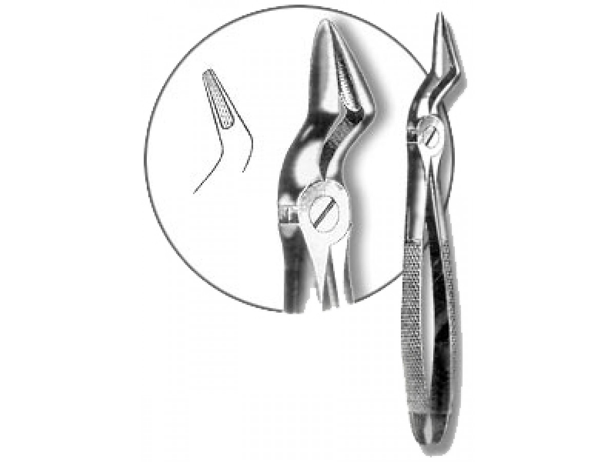 Щипцы для удаления корней зубов верхней челюсти с широкими губками, имеющие форму соответствующую анатомическим особенностям отдельных зубов. Производитель: МИЗ им Ленина - Ворсма, РФ.