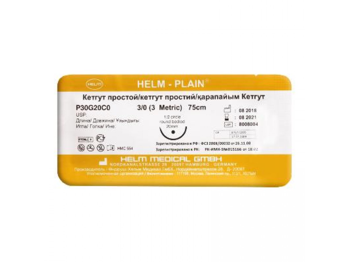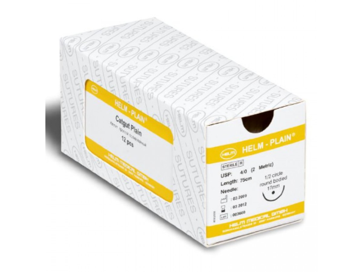 Кетгут полированный HELM-PLAIN® - рассасывающийся, стерильный хирургический шовный материал, состоящий из натуральных очищенных коллагеновых тканей, полученных из серозного слоя крупного рогатого скота или из подслизистого волокнистого слоя кишок овец. Поставляется в упаковке, содержащей специальный спиртовой консервант, обеспечивающий сохранность эластичных свойств нити. Производитель: HELM, Германия.