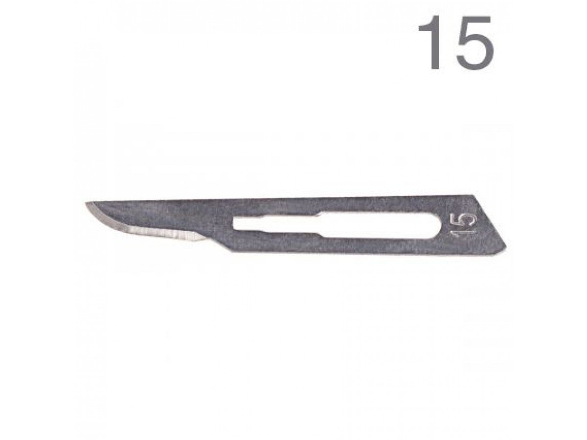 Лезвие № 15 имеет небольшую изогнутую режущую кромку, подходящую для выполнения коротких и точных разрезов. Применяется при различных хирургических манипуляциях, таких, как иссечение небольших опухолей кожи, иссечение рецидивирующих фурункулов, вскрытие коронарных артерий и пр. Производитель: STEA, Индия.