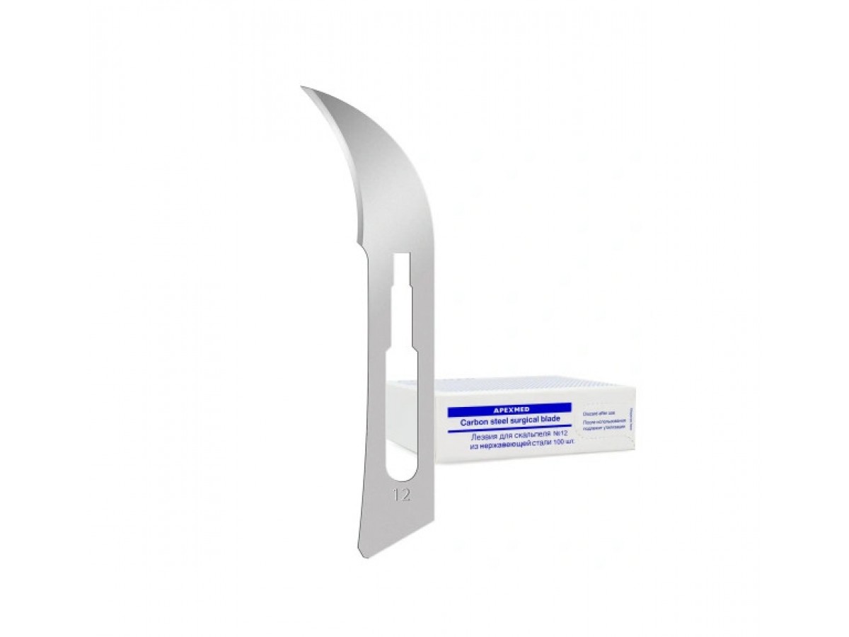 Лезвия для скальпеля одноразовые Apexmed №12 - используется для рассечения мягких тканей и сосудов при хирургических вмешательствах. Производитель: APEXMED, Япония.