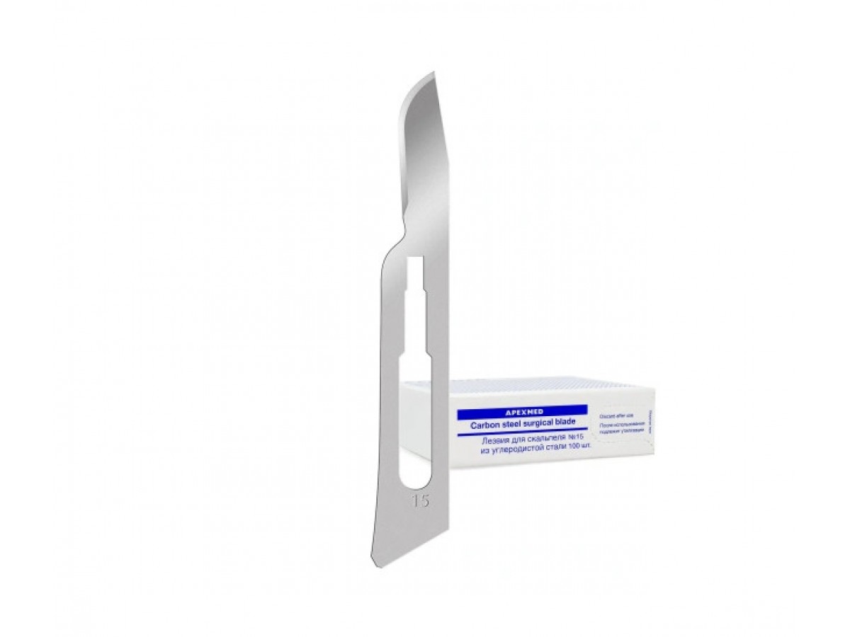 Лезвия для скальпеля одноразовые из углеродистой стали Apexmed №15 - используется для рассечения мягких тканей, сосудов и швов при хирургических вмешательствах. Производитель: APEXMED, Япония.