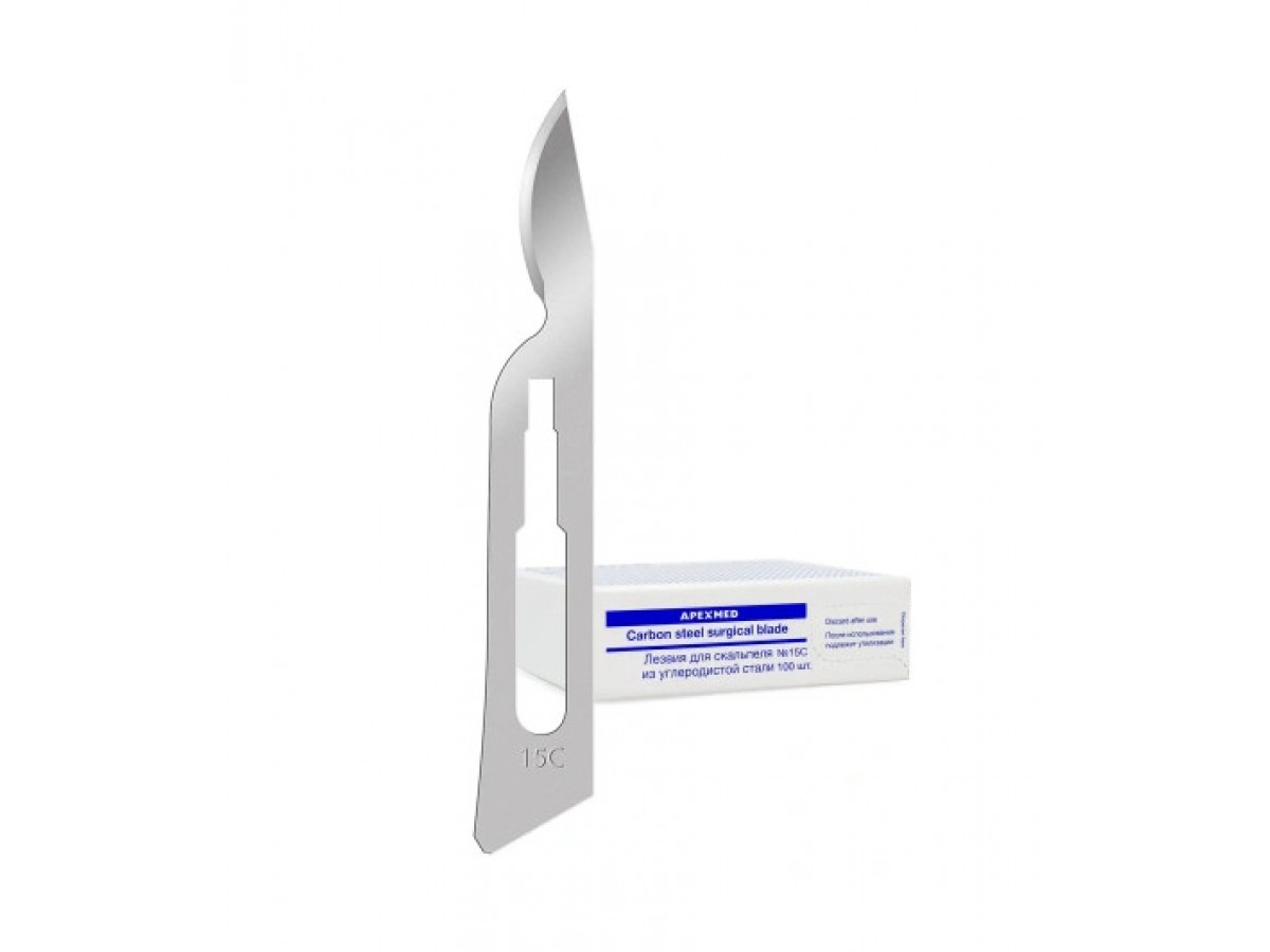 Лезвия для скальпеля одноразовые из углеродистой стали Apexmed №15C - используется для рассечения мягких тканей, сосудов и швов при хирургических вмешательствах. Производитель: APEXMED, Япония.