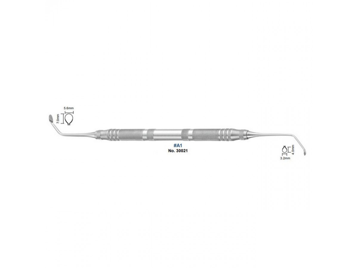 Кюрета №A1 для синус-лифтинга. Наконечник имеет форму, которая не повреждает мембрану Шнайдера (мембрану верхнечелюстной пазухи). Производитель: YDM, Япония.