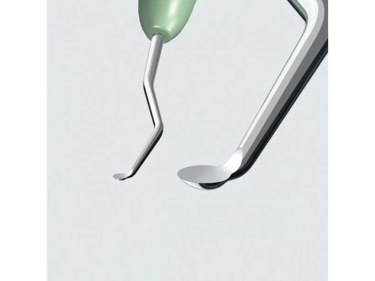 Экскаватор LM 611-621 имеет круглую режущую часть и изогнутый край. Плечо и рабочая часть имеют тройной изгиб, что позволяет совершать “обратное” действие, облегчая работу на труднодоступных участках, таких как щечные, дистальные и лингвальные поверхности. Производитель: LM-Instruments Oy, Финляндия.