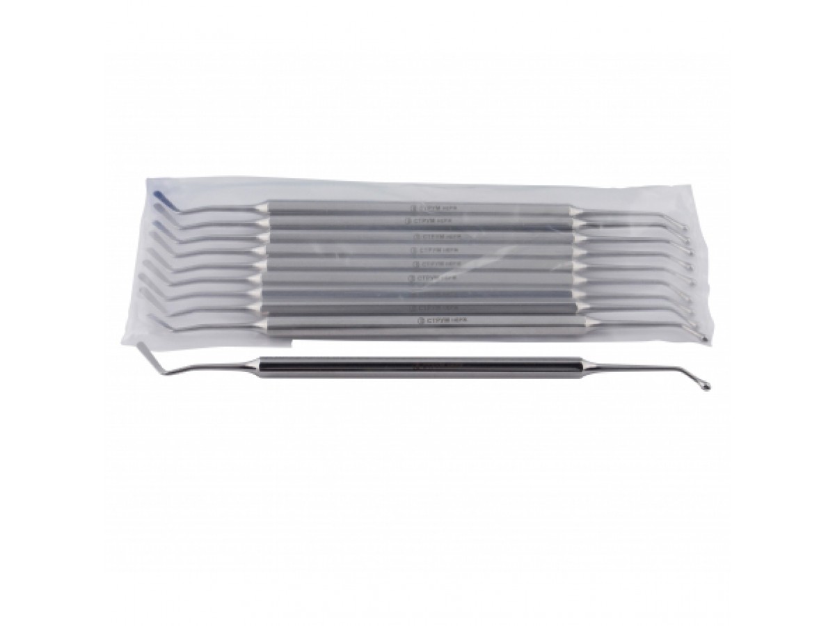 Двусторонний стоматологический прибор, изготовленный из нержавеющей стали. Инструмент изготовлен из первоклассных "пищевых" марок нержавеющей стали. Это способствует тому, что он имеет отличную коррозийную стойкость и длительный ресурс работы. Производитель: СТРУМ, Беларусь.