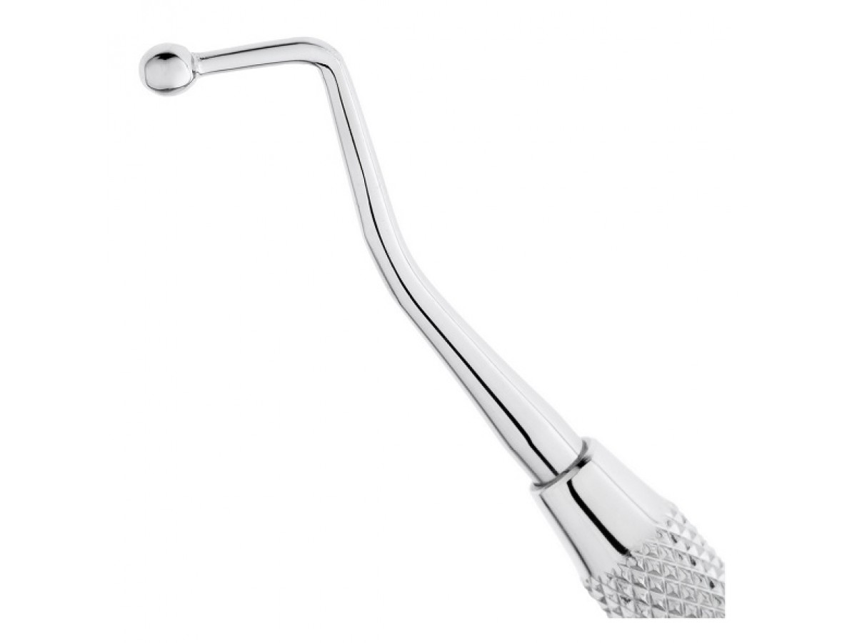 - Цилиндрическая ручка стоматологического инструмента удобна в использовании и предотвращает скольжение фаланг пальцев в перчатке, благодаря ретенционным узорам на поверхности рукоятки.