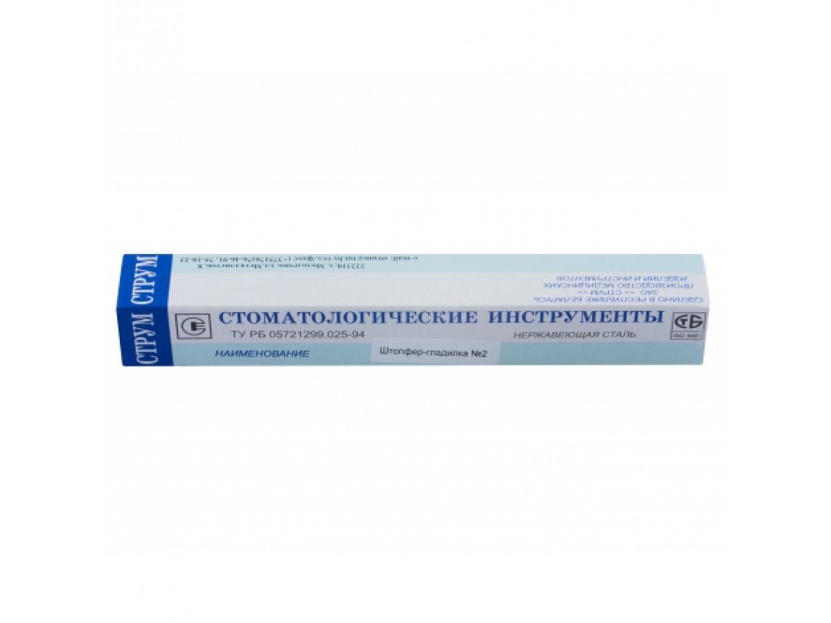 Гладилка комбинированная со штопфером №2, для внесения прокладок, пломбировочного материала в полости зуба и уплотнения пломбы. Производитель: СТРУМ, Беларусь.