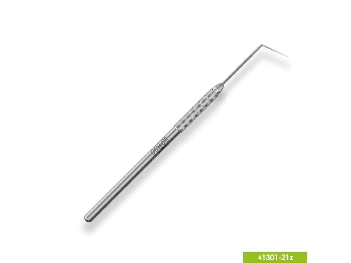 Односторонний зонд с одинарным изгибом. Предназначен для общего обследования глубоких кариозных полостей, устьевой части корневых каналов зуба и фиссур, а так же поиска полостей и микротрещин. Может использоваться на боковых и фронтальных поверхностях зубов. Производитель: Fabri, Россия.