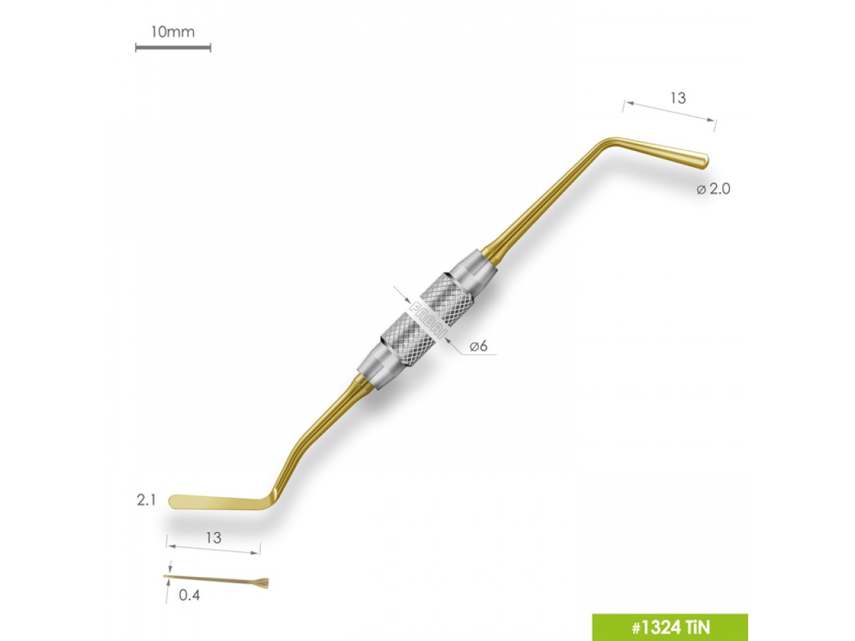 Окончания всех гладилок и всех конусовидных штопферов имееют правильную полусферическую форму. Толщина кончика гладилки составляет всего 0,4mm, при этом гладилка обладает небольшой степенью эластичности, но в целом остается достаточно жесткой. Сочетание этих факторов делает инструмент функциональным и изящным, что позволяет производить точные и деликатные манипуляции