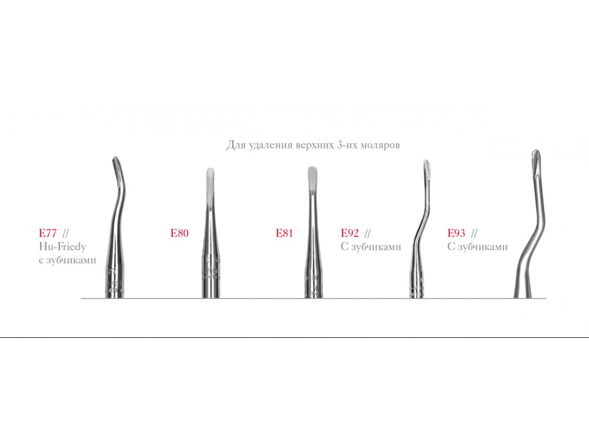 Элеваторы с зубчиками для верхних 3-их моляров для расшатывания и последующего удаления зубов. Изготовлены из запатентованной стали Immunity Steel и отличаются особой прочностью.. Производитель Hu-Friedy, США.