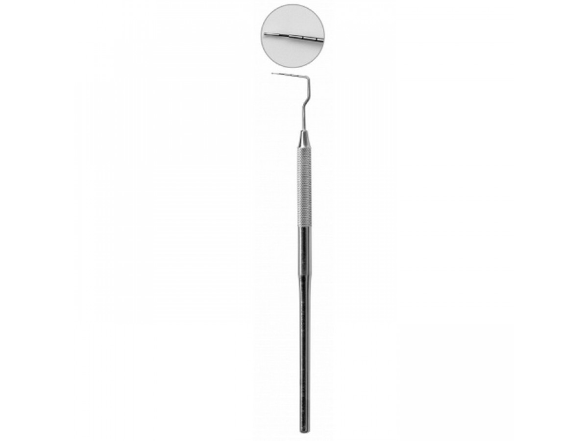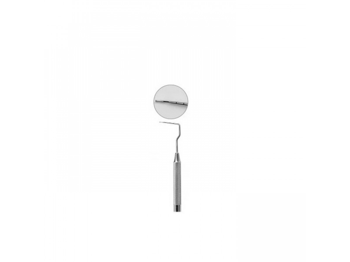 Стоматологические инструменты изготовлены из высококачественной, нержавеющей стали хирургического назначения. Ретенционный узор на ручке. Рабочая часть с двойным изгибом.