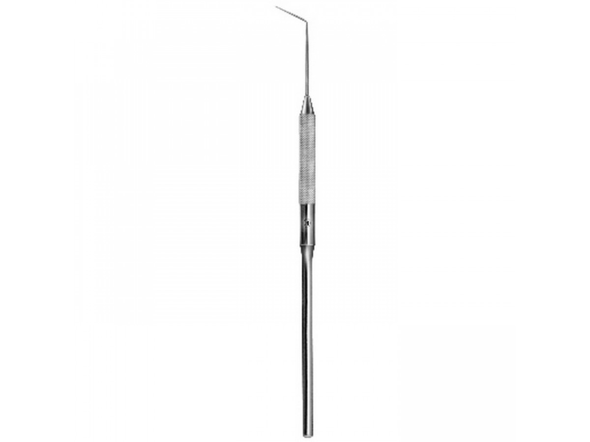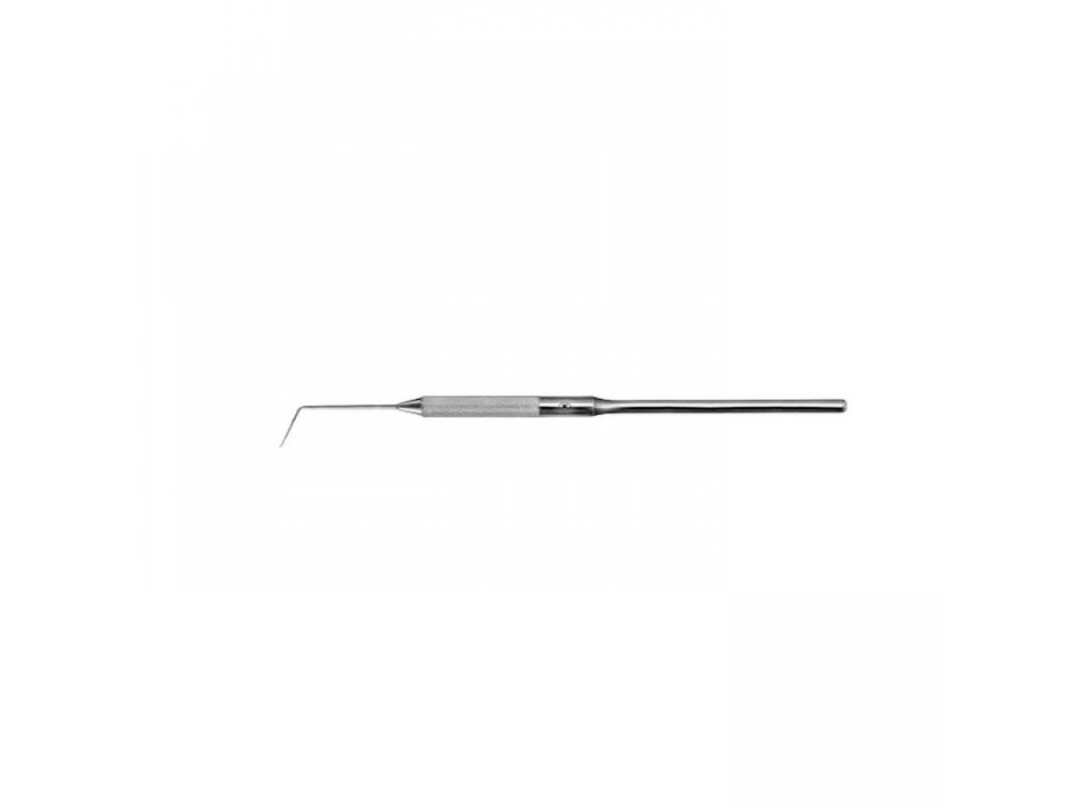 Стоматологические инструменты изготовлены из высококачественной, нержавеющей стали хирургического назначения. Ретенционный узор на ручке. Рабочая часть расположена под углом, без разметки.
