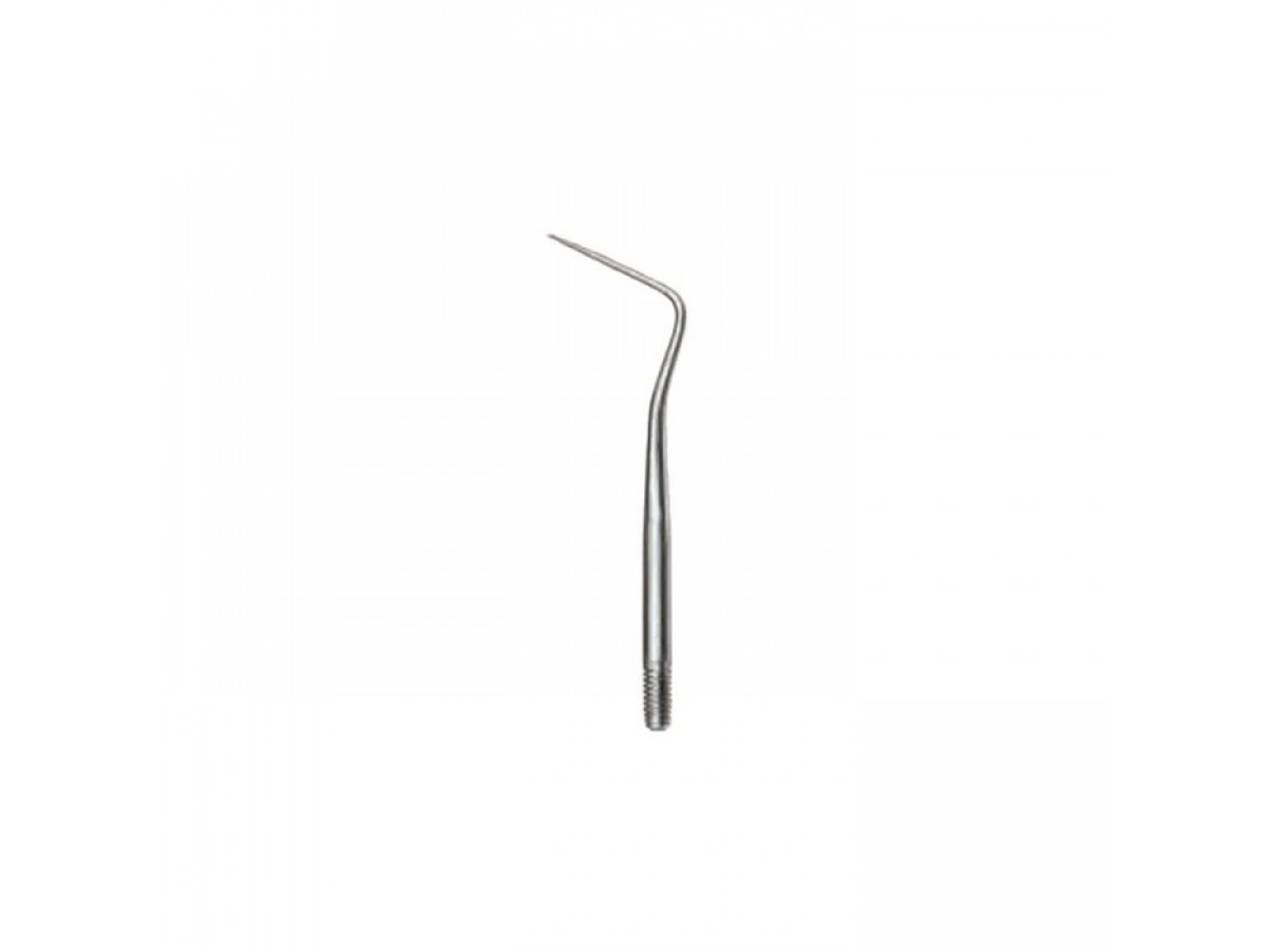 Стоматологические инструменты изготовлены из высококачественной, нержавеющей стали хирургического назначения. Съемный зонд без ручки, совместим со всеми стандартными ручками с метрической резьбой. Рабочая часть изогнутая, без разметки.