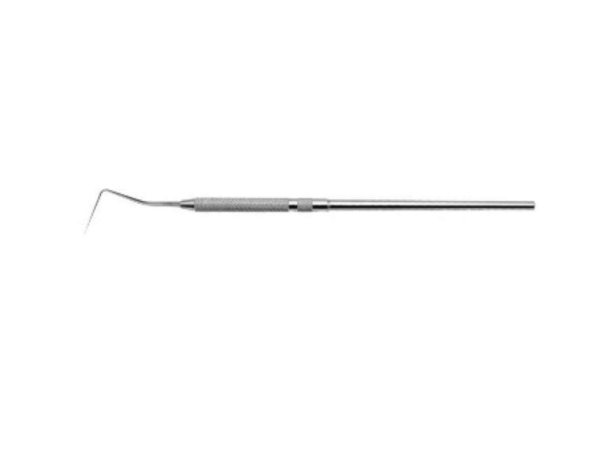 Зонд зубной изогнутый предназначен для выявления кариозных полостей и определения расположения устьев каналов. Представляет собой прямой стержень, рабочая часть расположена под углом к рукоятке. Производитель: YDM, Япония.