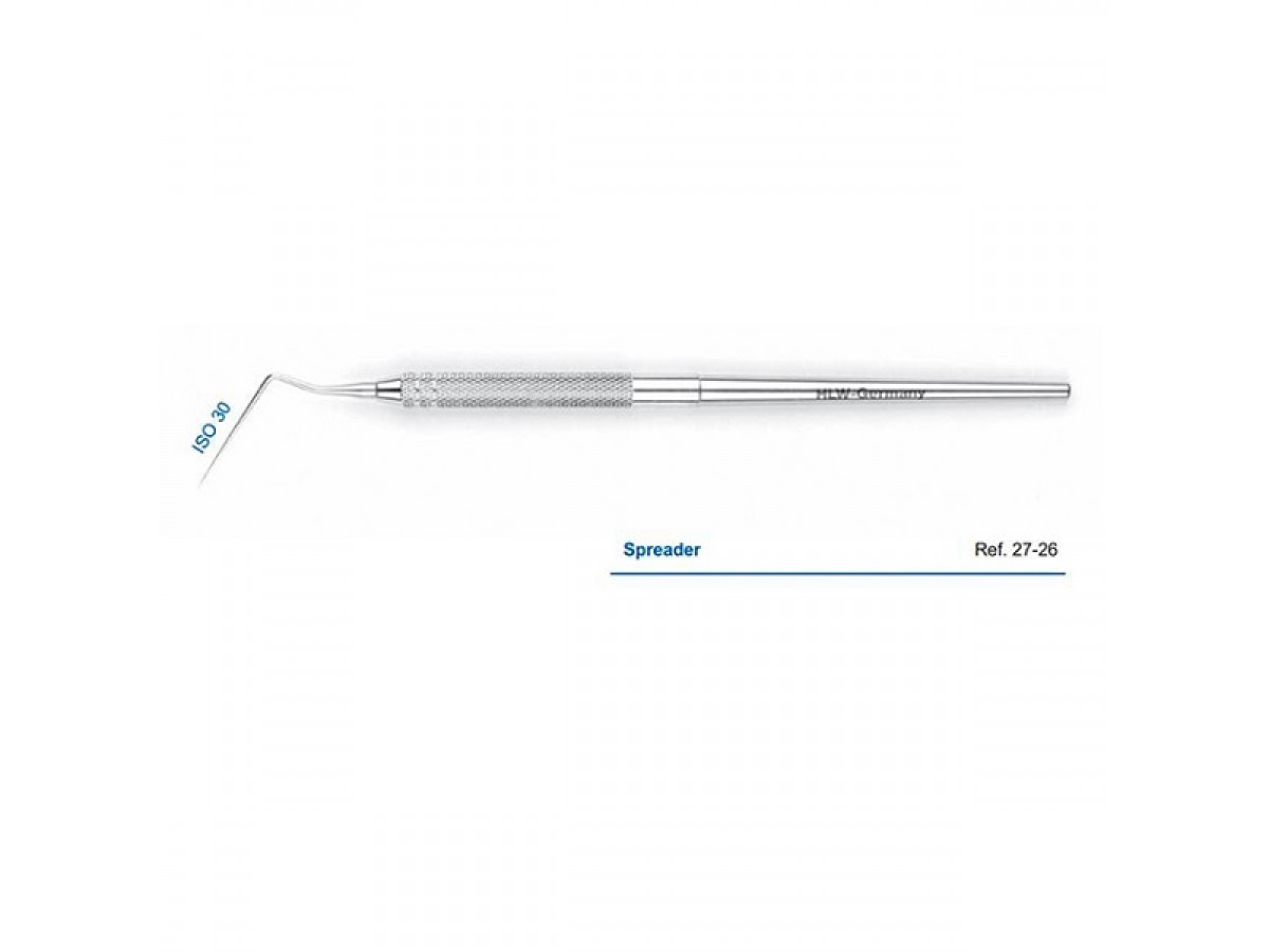 Зонд односторонний Спредер ISO 30, предназначен для введения гуттаперчевых штифтов и их уплотнения в корневых каналах зуба. Удлиненная рабочая часть спредера имеет заостренный кончик, позволяющий контролировать положение пломбировочного материала в канале. Производитель: HLW Dental Instruments, Германия.