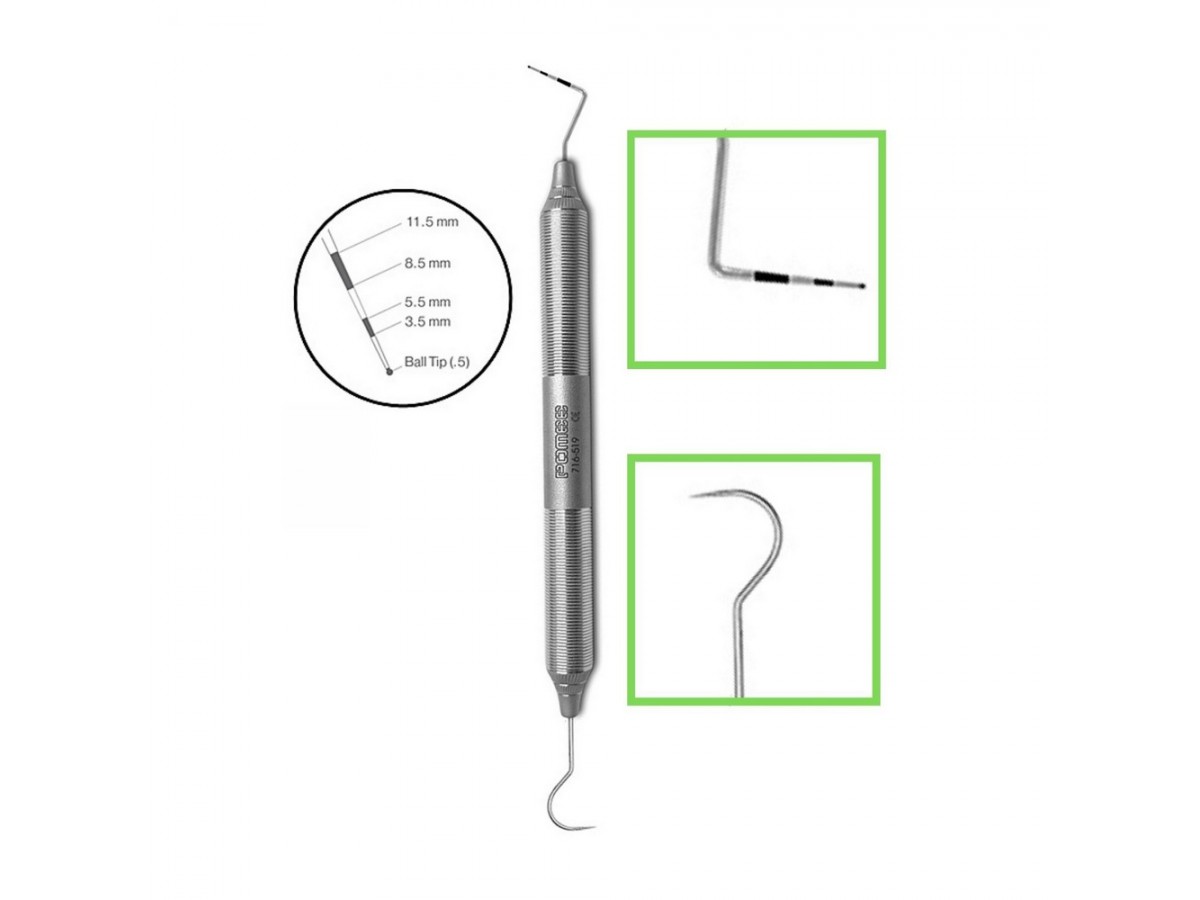 - Используется в стоматологической практике для осмотра зуба и обнаружения различных его дефектов: кариозных полостей, размягченного дентина и т.п., а также для поиска входов в каналы.