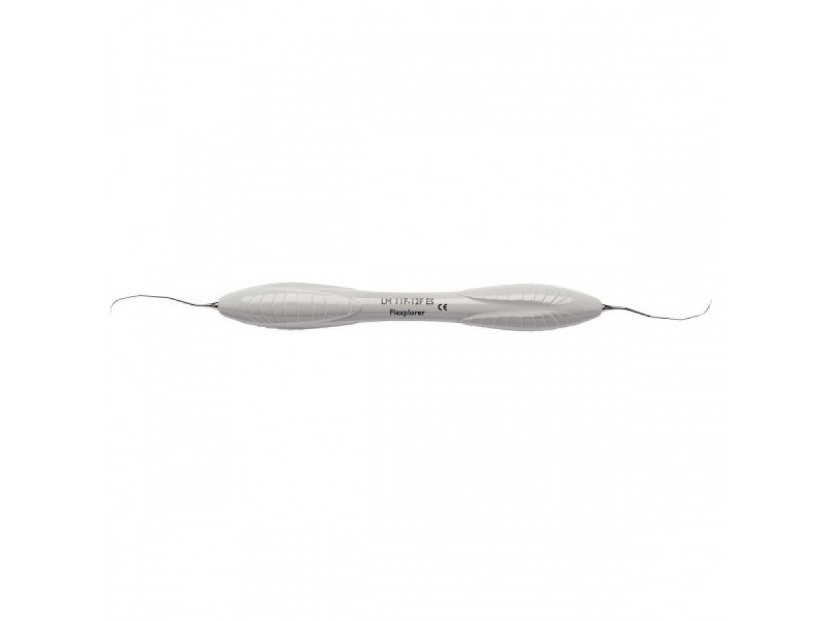 Зонд LM 11F-12F Flexplorer с гибкими рабочими окончаниями. Он предназначен для обследования под десной всех поверхностей зуба. Углы наклона рабочих частей аналогичны углам кюреты Грейси 11-12. Этот инструмент отлично подходит для обследования более глубоких пародонтальных карманов. Производитель: LM-Instruments Oy, Финляндия.